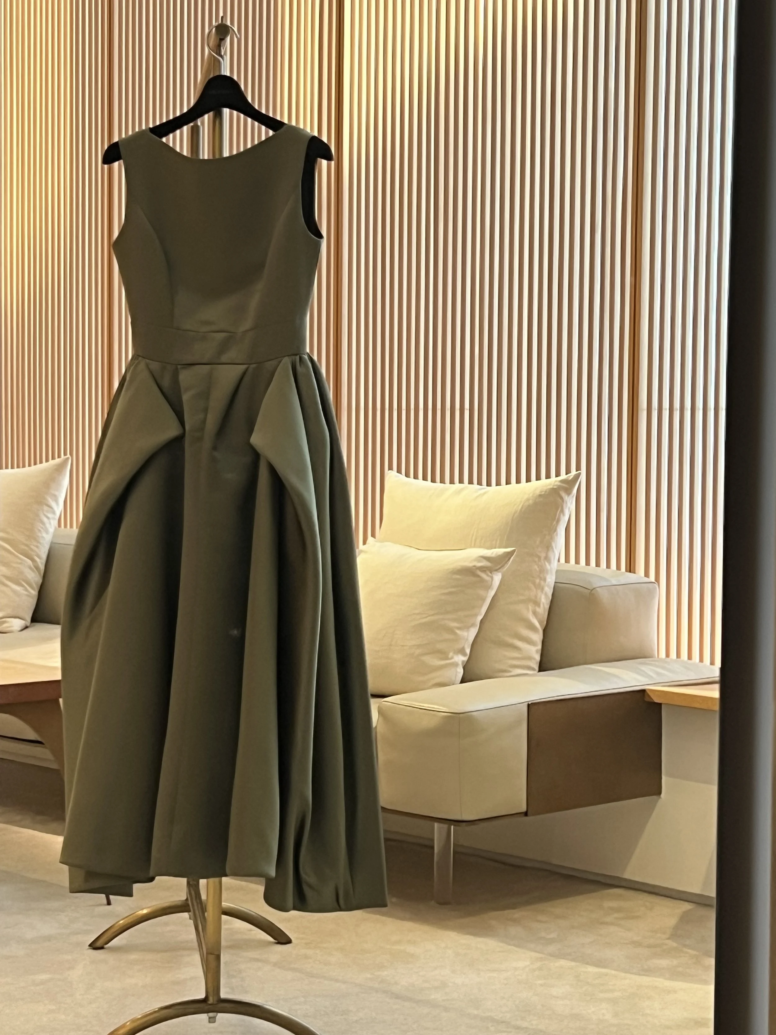 インスタグラムで見つけて、あまりにも素敵で、細部まで、ぴーんと優雅で、着ていると綺麗な人になった錯覚を与えてくれる、自信をくれるドレスです。