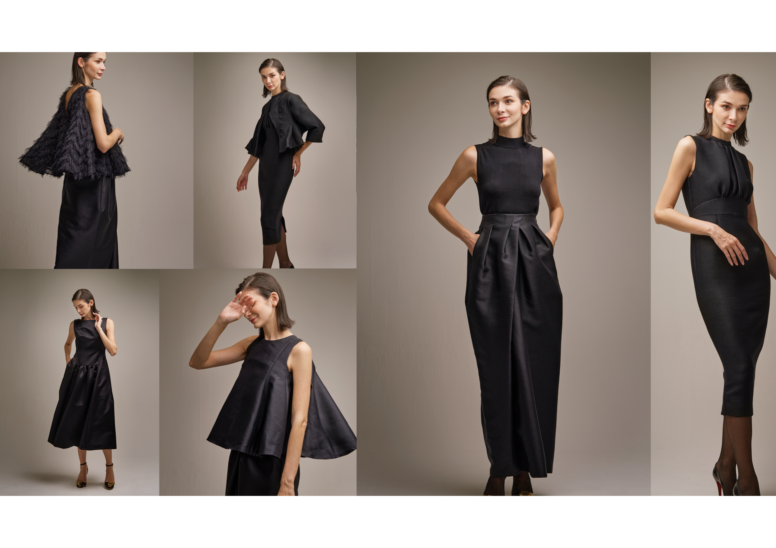 ヘレナは定番色の黒、ネイビーのほかに、ホワイト、ベージュ、チャコールなどカラーバリエーションを豊富にご用意。ヘレナと合わせて着たいチュール素材のボレロ風トップスのGrace-グレース-もおすすめです。昨年デビューしたオールインワンドレスのilly-イリー-は、ベロアのブラックとネイビーでご用意。7号、11号の試着用サンプルを用意しています。