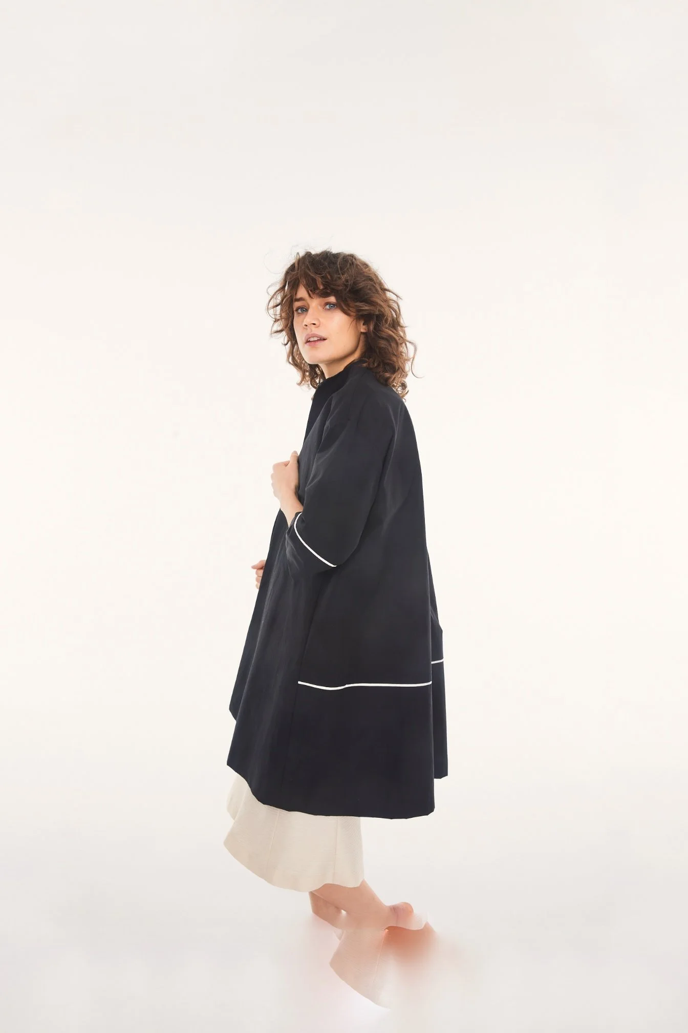 肩周りから裾までゆとりをもたせたドロップショルダーのコートドレスです。