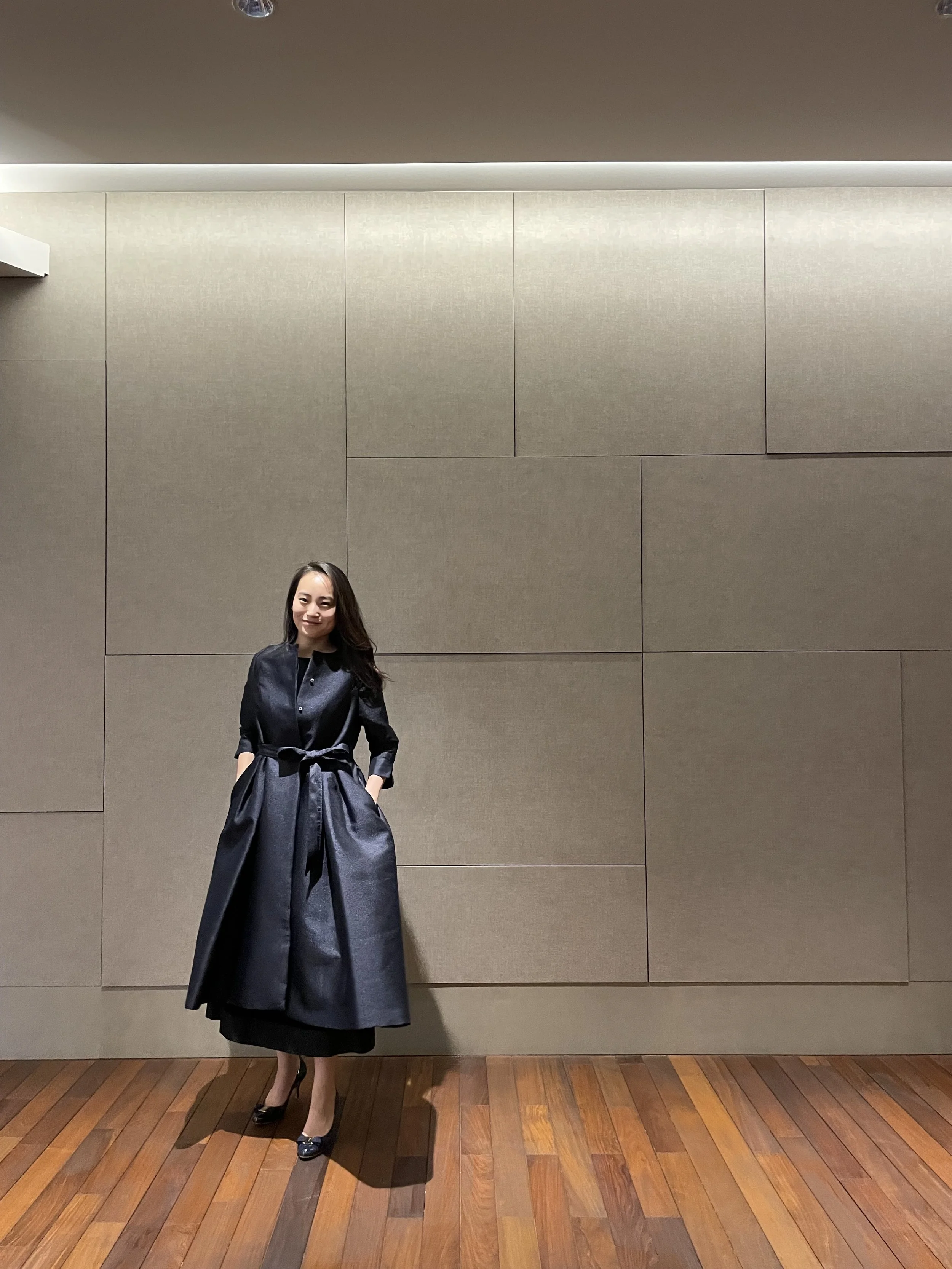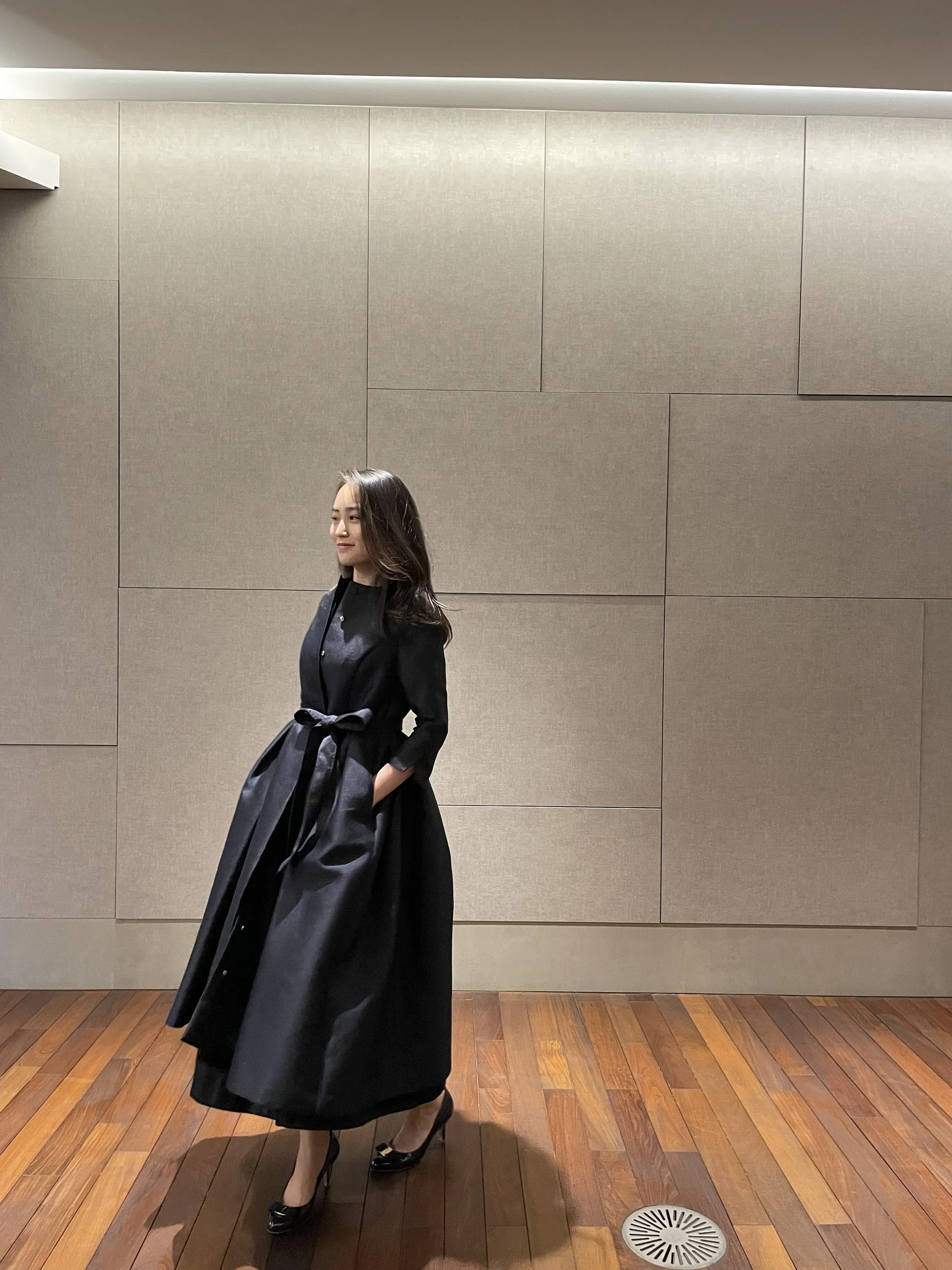 コンパクトな袖と肩まわりから一転,裾にかけてスーパーボリュームで広がるコートワンピース。華やかで上品な光沢感のあるミカド布地で仕立てました。前開きボタンが裾まで付いており,ワンピースとしてはお呼ばれドレスや式典シーンにも。羽織りとして使えばパンツスタイルにも効相性のシャープなシルエットに。流行に左右される事のないエレガントな佇まいで,様々なシーンを彩ってくれる一枚です。